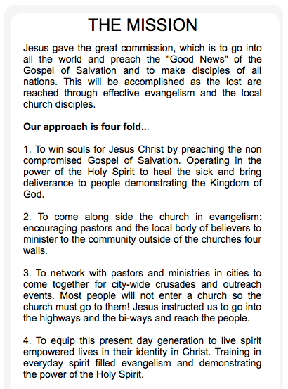 All Nations was founded in 2002 in Kansas City, USA with the mandate to preach the "Good News" of the Gospel in the power and authority of the Holy Spirit.